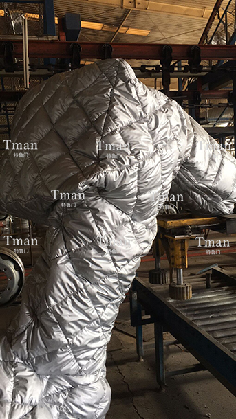 在冷庫和北方的冬季,零下三十度左右氣溫環(huán)境下,會導致機器人運行速度變慢,水管凍裂,機器潤滑油凝固等現象,針對客戶的需求,我司開發(fā)出可加熱,可制冷的恒溫機器人防護服,根據客戶現場需求調整溫度,保障客戶在惡劣的環(huán)境中正常使用。