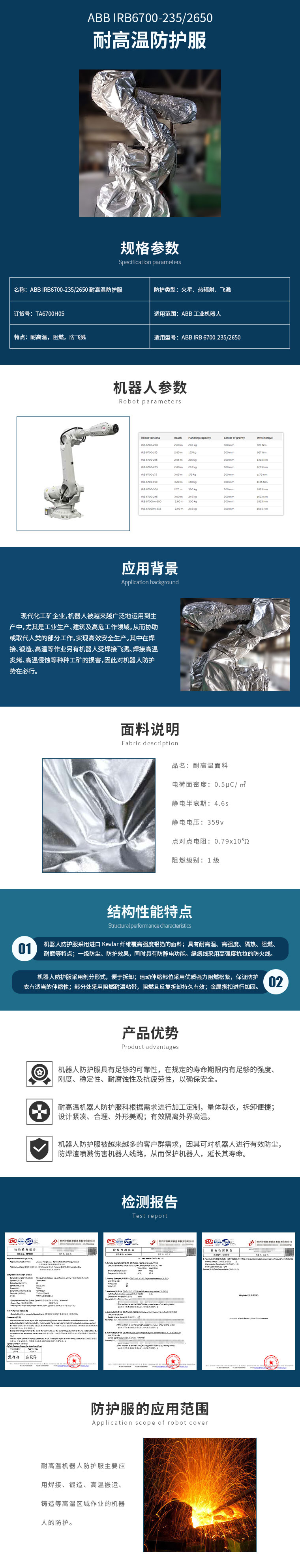 IRB6700-235/2650耐高溫防護(hù)服 耐高溫機(jī)器人防護(hù)服 ABB工業(yè)機(jī)器人 耐高溫,防飛濺,阻燃